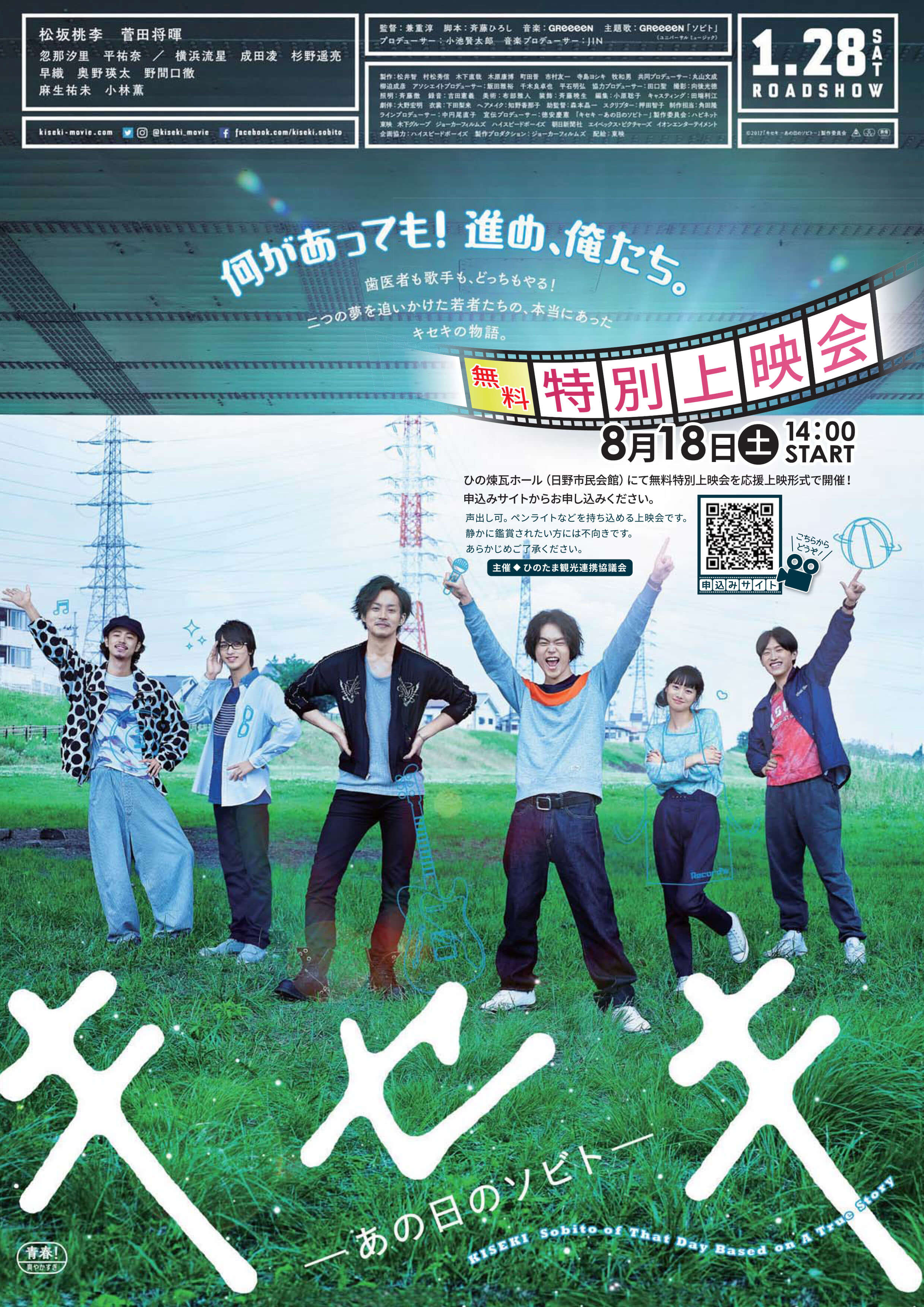 - 2018/07/27 イベント 映画『キセキ―あの日のソビト―』無料上映会のお知らせ