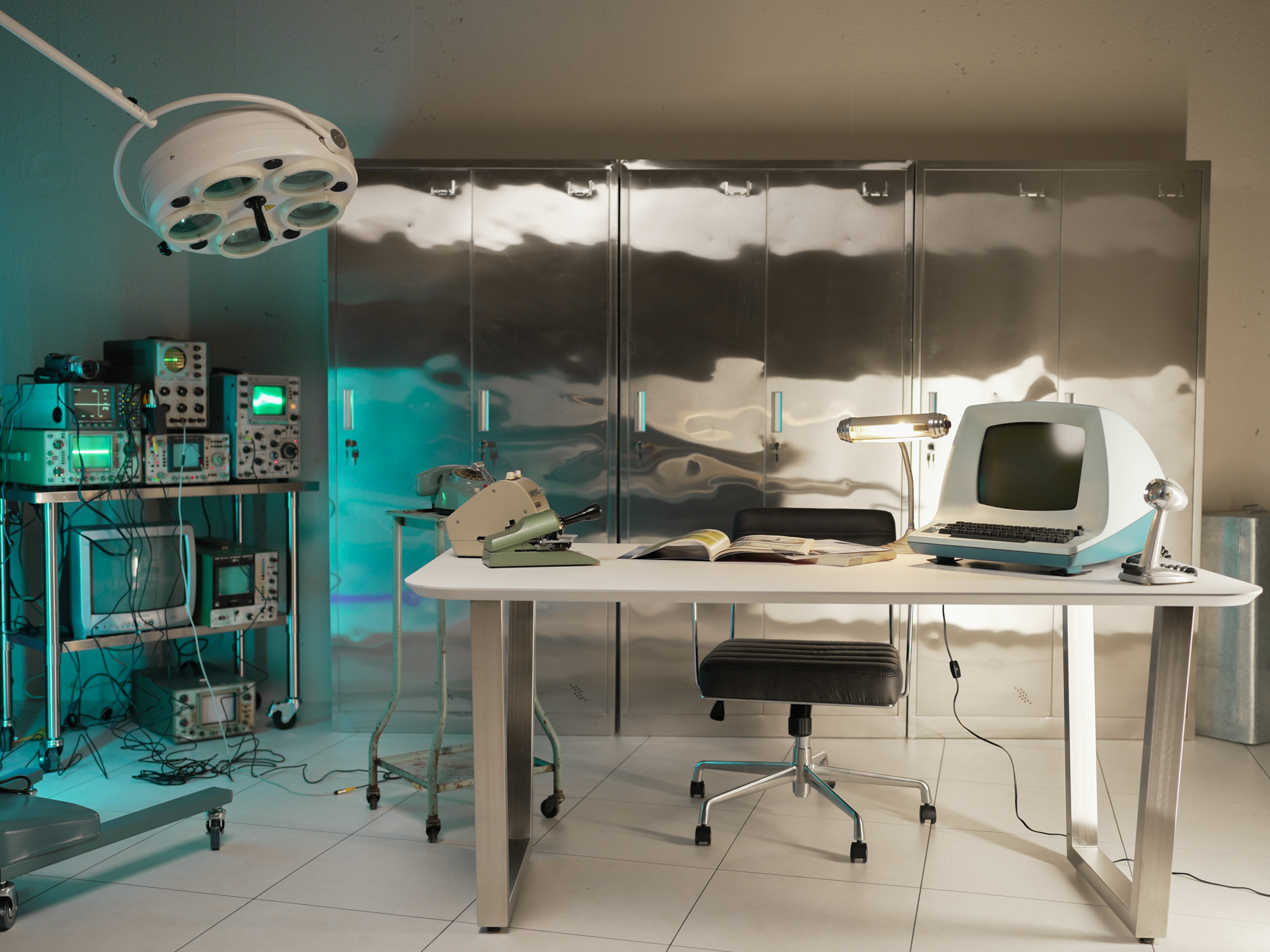 レアな小物と存在感のあるシルバーロッカーを配置した研究施設をイメージしたエリア