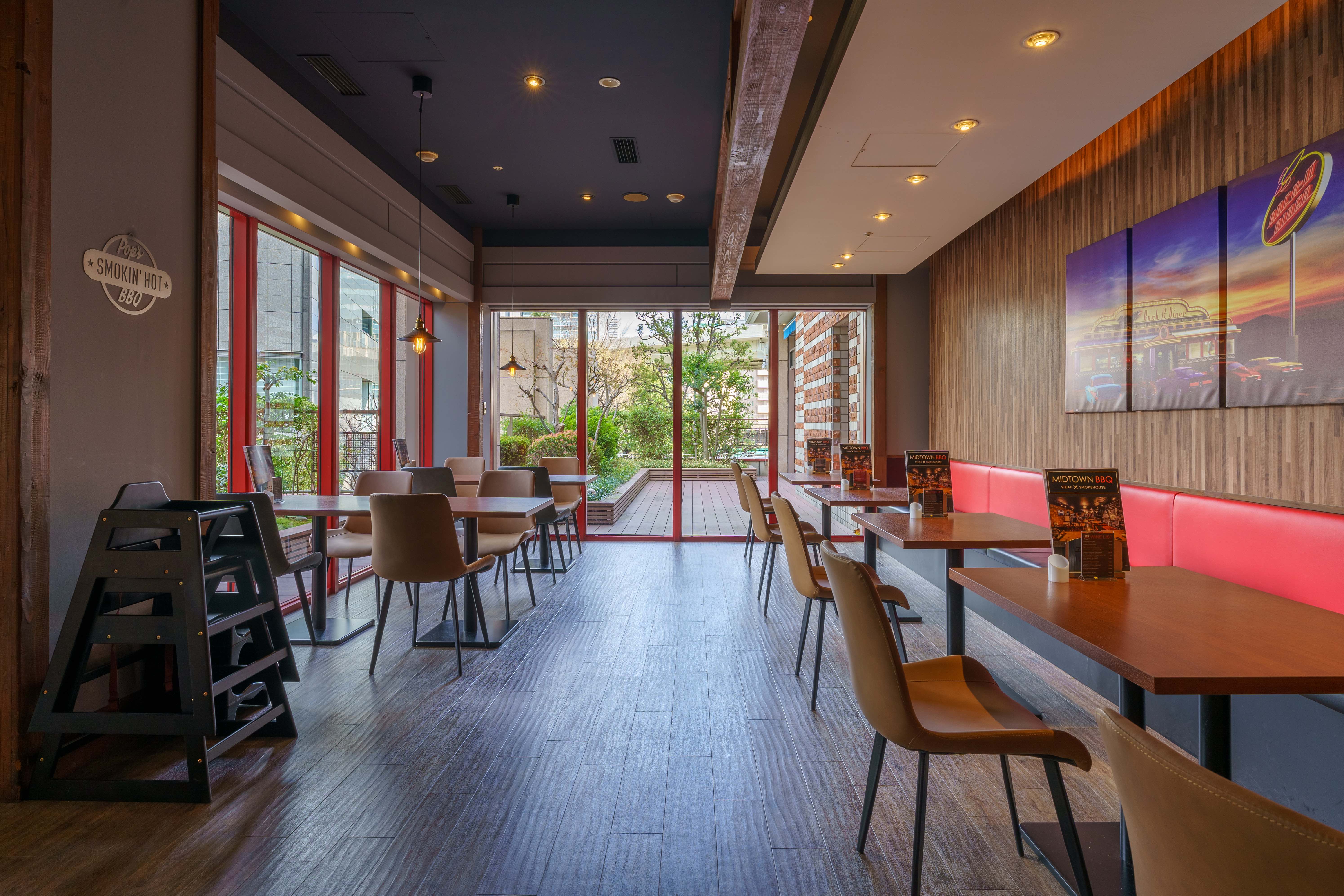 都心の好立地にある約60席のアメリカンBBQレストラン。