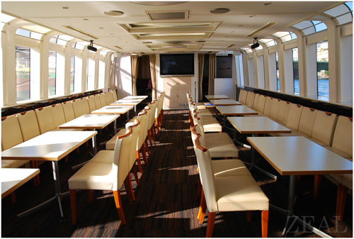 全長28m、総トン数51トン、定員95名のパーティークルーザーです。トイレ、キッチン付き。船をスタジオ・劇船として使用するだけではなく、カメラ船として使用することもできます。