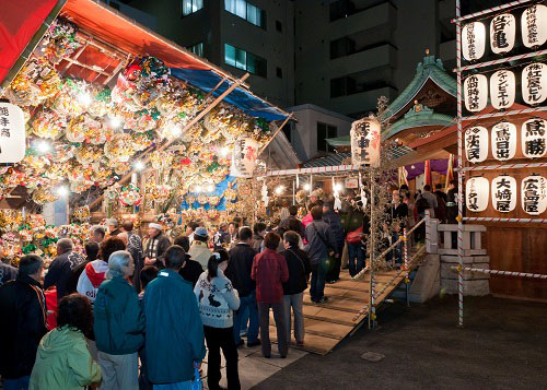 - JR大森駅から大森銀座商店街を抜けたところに位置しています。江戸中期より武運・商売繁盛の神様として、信仰を集めています。まちかどの小さなお社ですが、11月の酉の市には、城南地区随一のにぎわいを見せています。