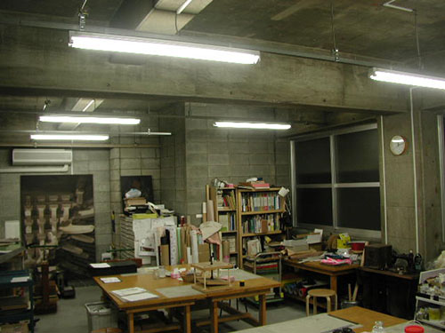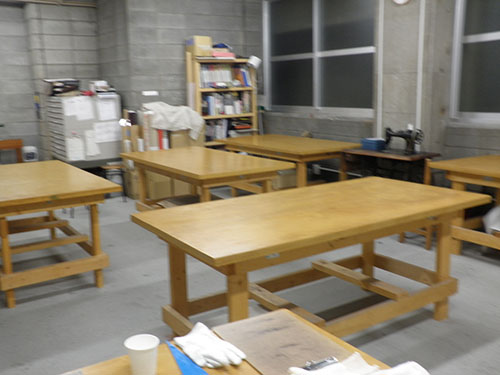 - 室内は基礎むき出しのまま、コンクリート打ちっぱなし、ブロックが壁となっています。工房内は木製の作業台があり、(1800×900)床はコンクリートです。南側、北側の壁面全面が窓となっています。(シャッター有り)工房内は基本的に普段使用していますので、作業場の様なロケーション向きです。店舗部分は、材料や道具等を陳列しています。