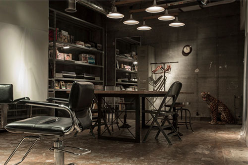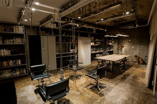 地下にある倉庫テイスト(インダストリアル)のヘアサロン。撮影角度によりサロンと思えない空間で撮影が出来ます。店内の照明はほぼ調光可能。