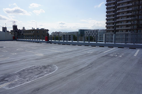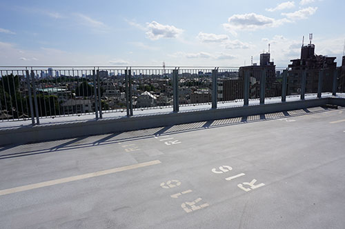 立体駐車場の屋上・9F半面ともに貸出可能です。屋上は東京を一望できる抜け感が最高です。