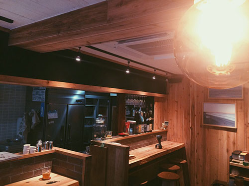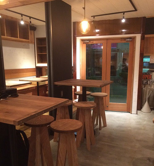外装内装共にウッドベースの作りのダイニングバー。西海岸のカリフォルニアを感じさせる雰囲気です。