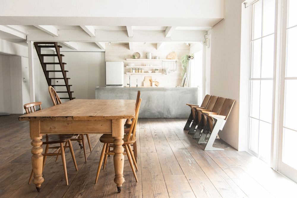 ムービー撮影にも対応した、自然光が入るハウススタジオ。実用可能なアイランドキッチンがあり、キッチンスタジオとしての利用も可。吹き抜け、らせんの鉄階段、応接スペース、ベッドルーム等、多彩なロケーションあり。平日は1時間より使用可。24時間使用可能で、窓の外からライティング可、建て込み・作りこみも可能なので、便利よく使えます。機材・家具・小物・調理器具の使用料が無料なのも魅力的です。