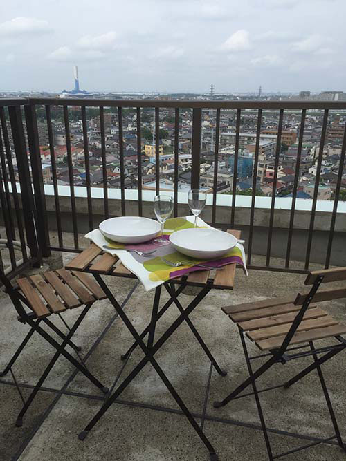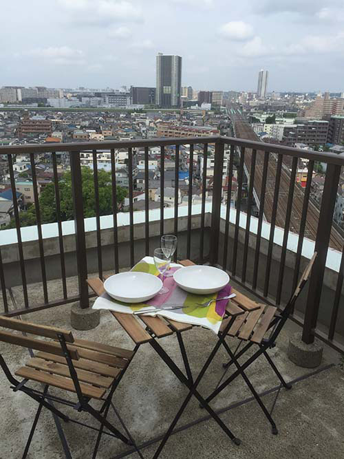 15階の角部屋にあるルーフバルコニーからは亀有の街が一望できます。常磐線の線路が一本のび、とても雰囲気のある風景です。
