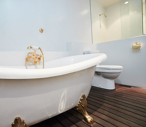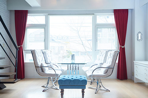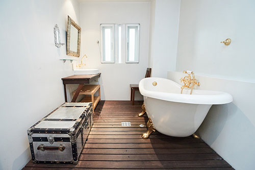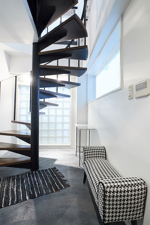 家具や内装は白を基調にまとめられており、螺旋階段、猫脚バスタブなど、特徴的なものもあります。