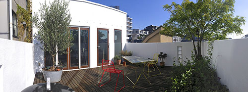 目黒川、青葉台エリアにある開放的なテラスのある4階建てのハウススタジオです。