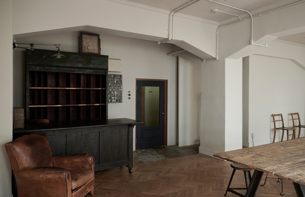 日本橋茅場町。川沿いにひっそりと建つ昭和2年築の小さなレトロな洋風建築のビルの中にPerfectly-Blankはあります。室内は古い建築の特徴でもあるとても柔い光に包まれています。