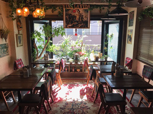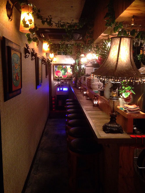 通常はカフェバーで、若い女性のお客様が多いお店です。店内の内装・雰囲気にとても力を入れた作りで、オシャレかつ、少し独特の雰囲気の内装になっています。