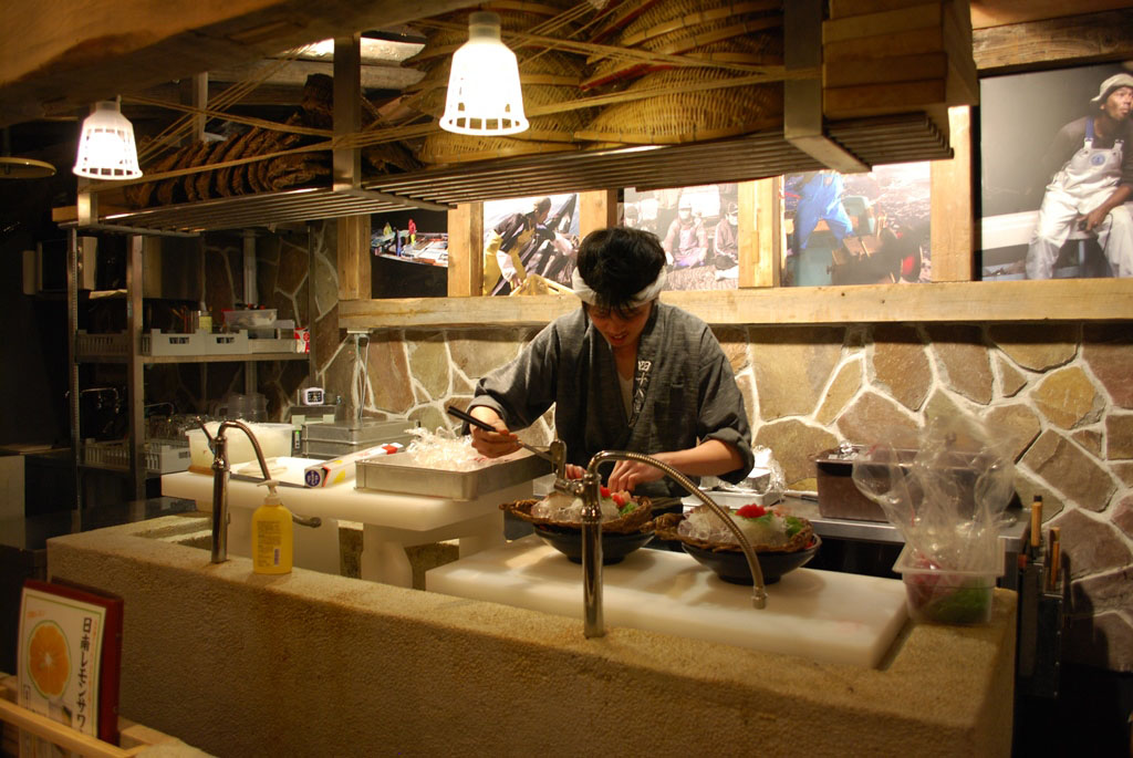 四十八漁場は漁師さんとのつながりを大切にした居酒屋ですので、店内は漁場で食事をしているかのような雰囲気を演出しています。