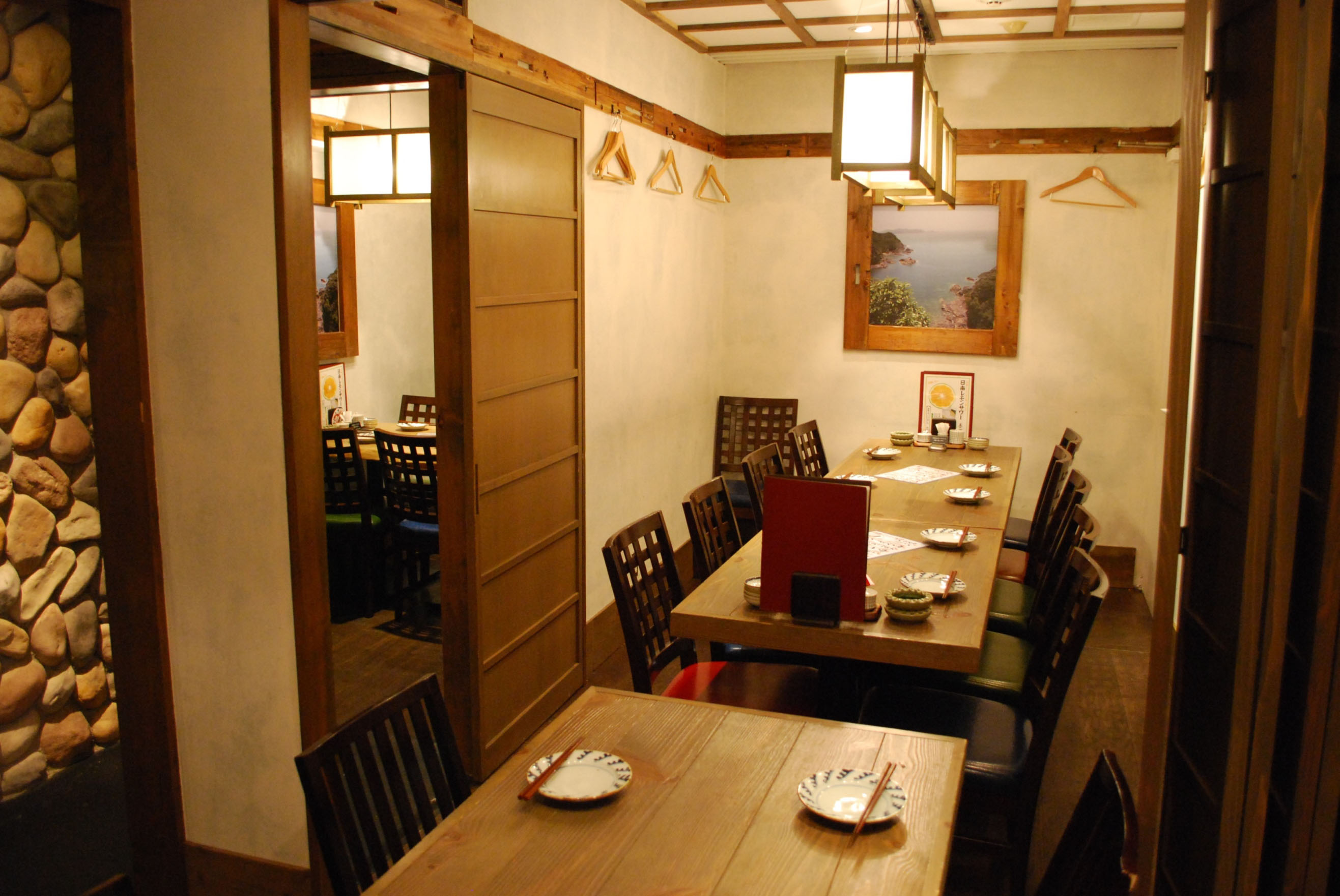 当店は四十八漁場のなかで最大収容の店舗です。座敷、椅子席、個室や席のサイズ感など用途に合わせて勝手よくご使用いただけます。
