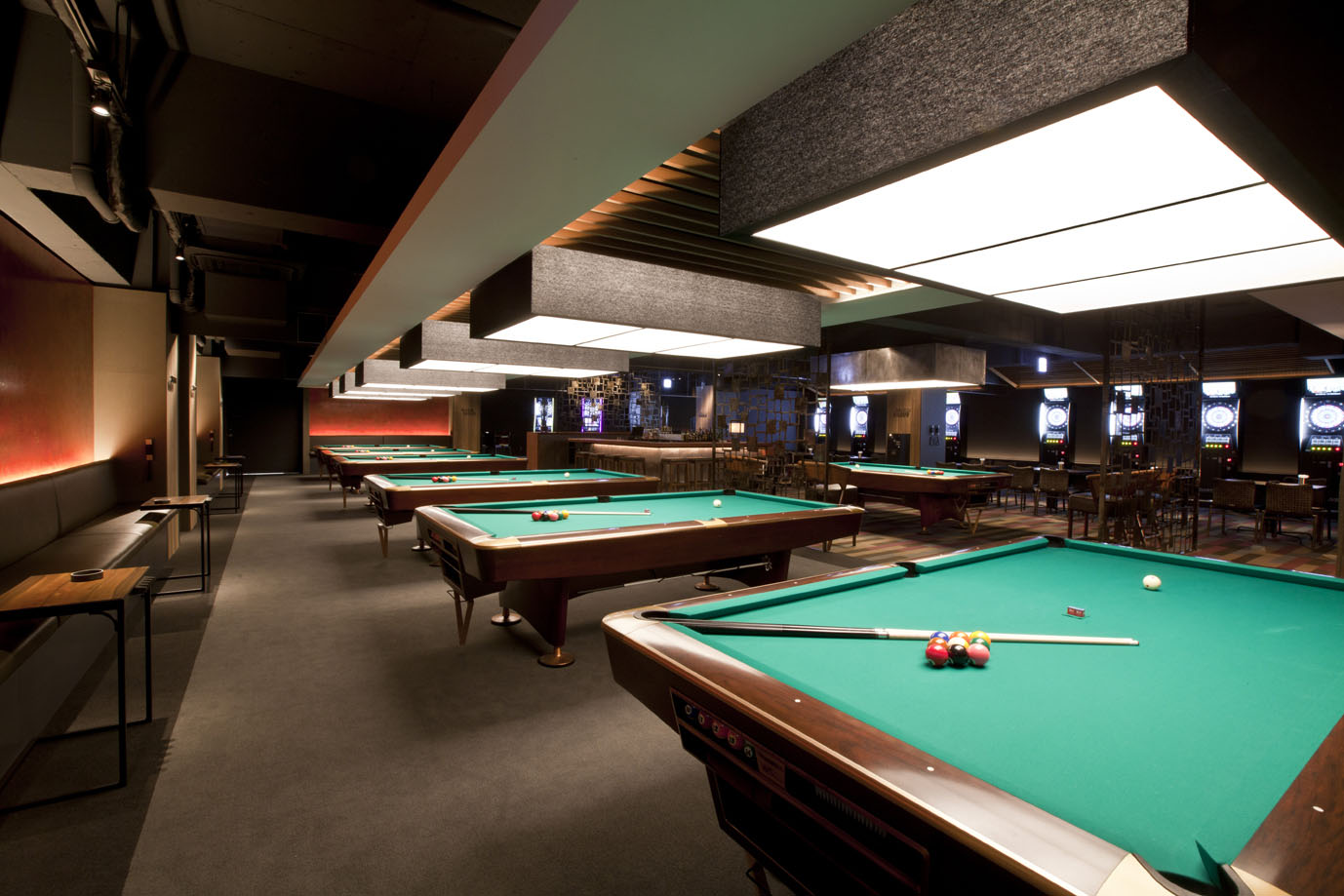 ビリヤード、ダーツ、卓球、シミュレーションゴルフを完備した複合アミューズメント施設です。