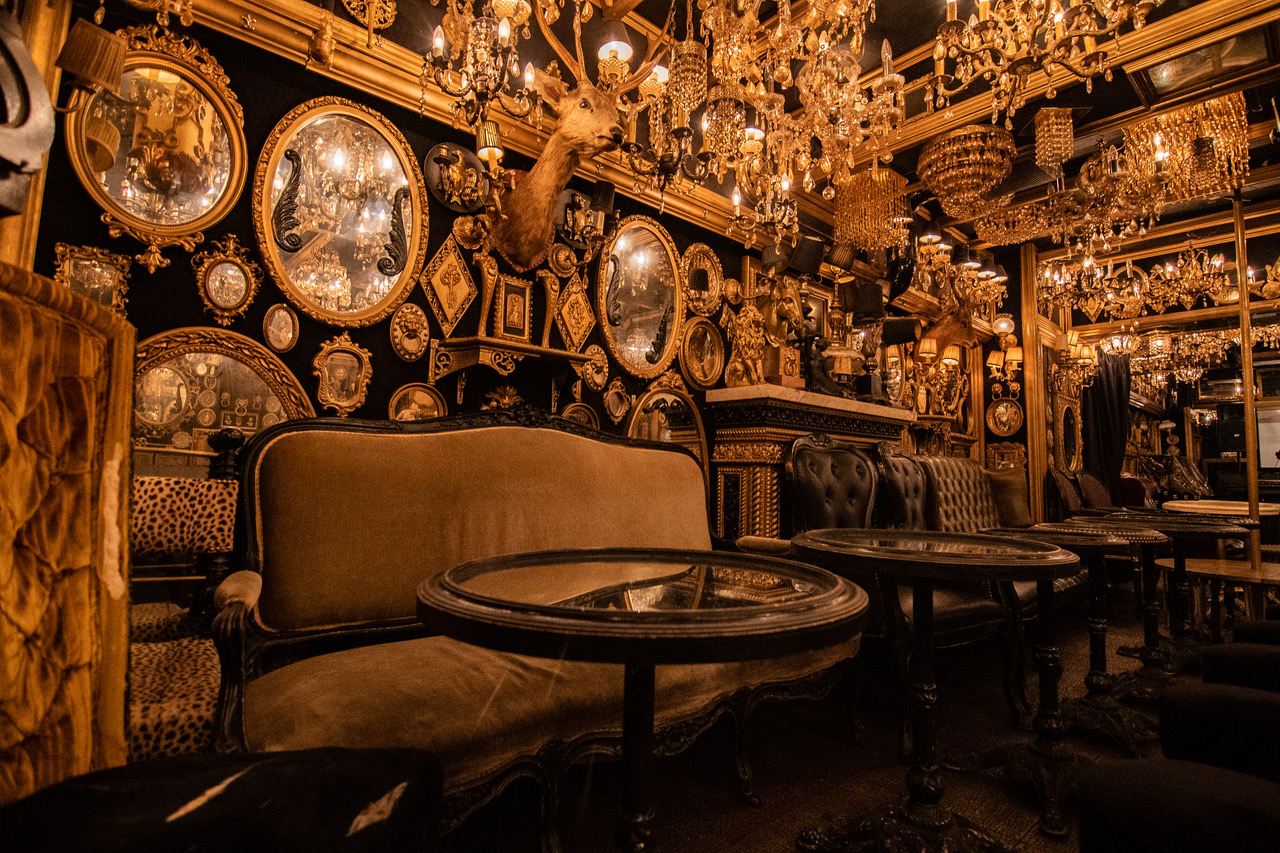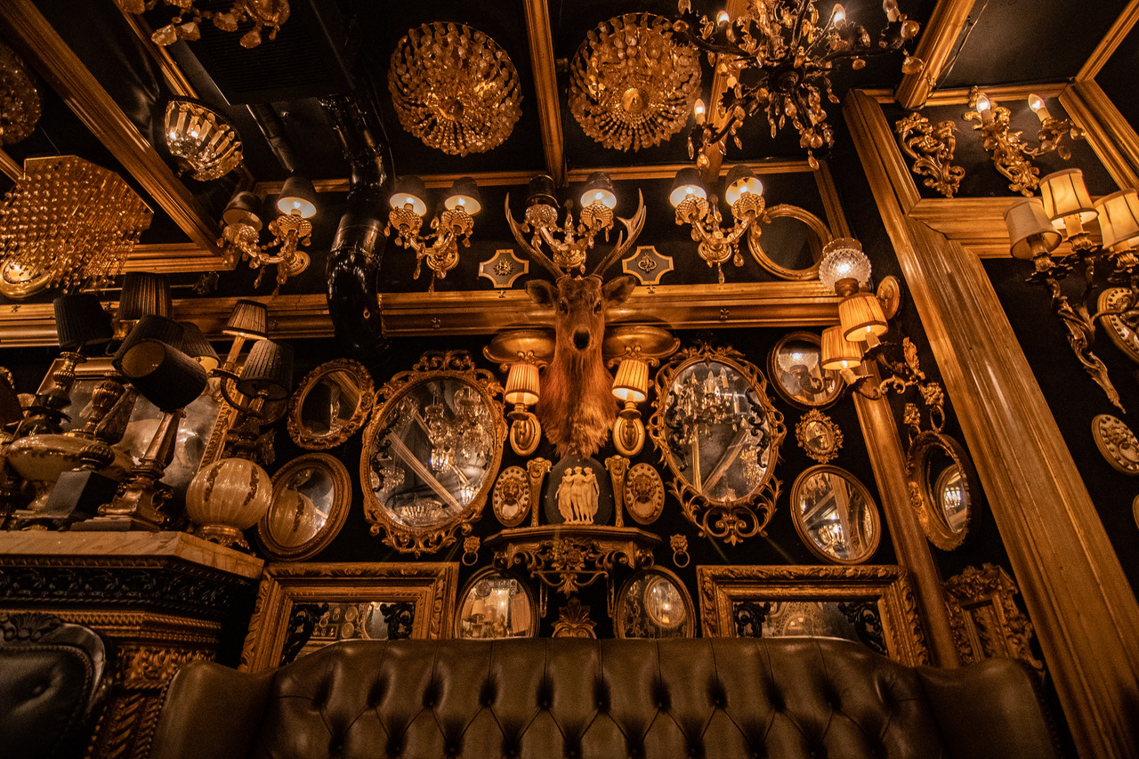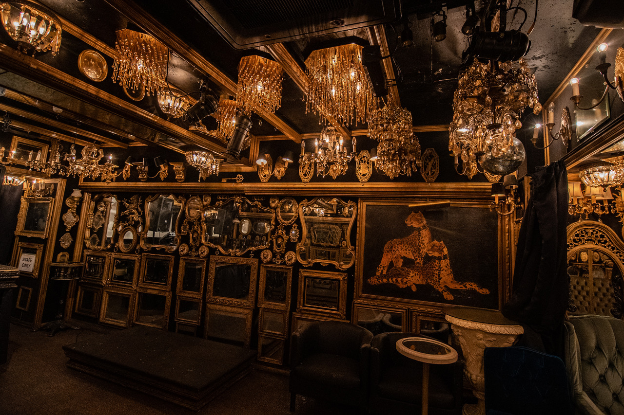 日本らしからぬこのビジュアル。知る人ぞ知る東京、渋谷の名所。2つのフロアはそれぞれ赤、黒のテーマカラーで統一されていて、こちらは黒のフロアとなります。