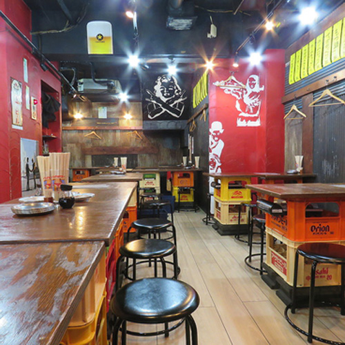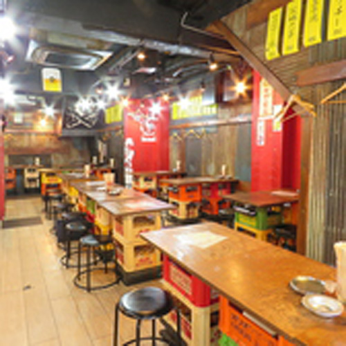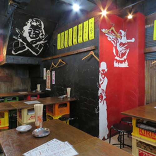 ワイワイにぎやかな店内はオシャレとレトロな印象をもつカラフルな大衆酒場です。