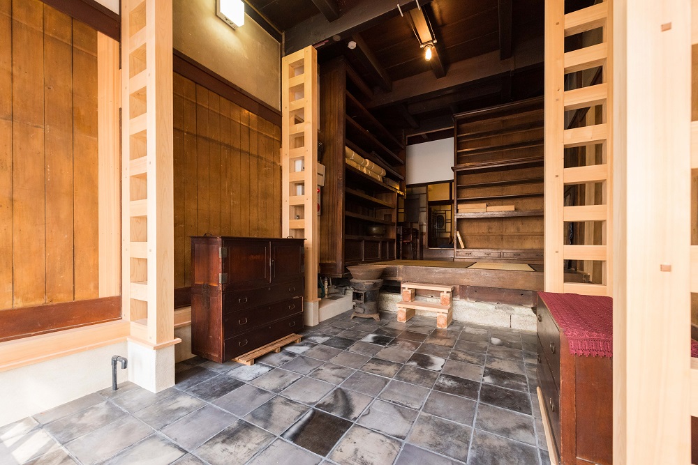 一階店舗奥に8畳の茶の間、台所、トイレ、風呂。