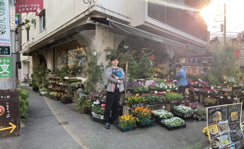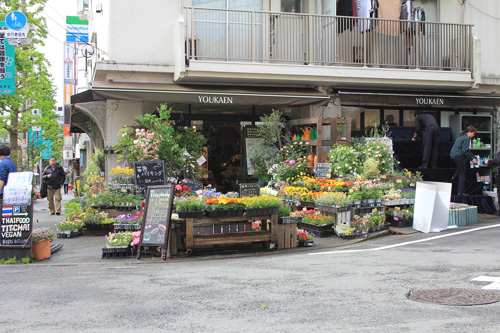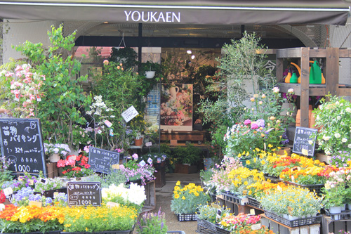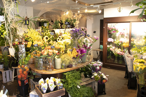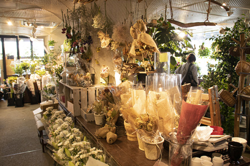 ユー花園 下北沢本店 入口切り花棚前 ゆとりのある入口となります。