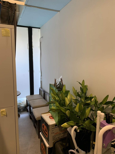 ユー花園 下北沢本店 スタッフルーム 入口w900×h2,300、2畳程のスタッフルーム、撮影時は控室または機材置き場としてご利用頂けます。電源あり