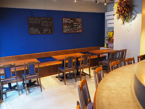 約10坪の店内はテーブル12席、カウンター8席ございます。