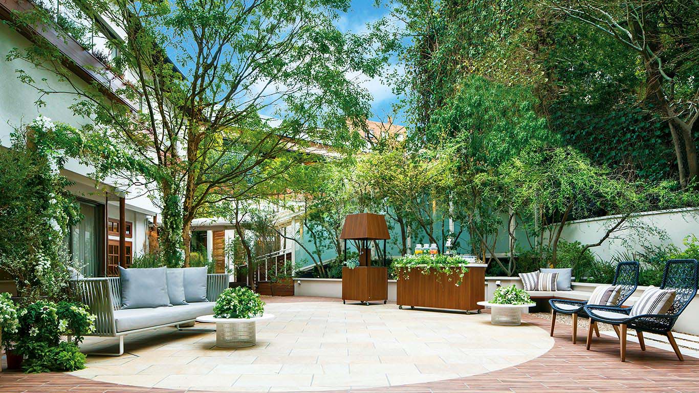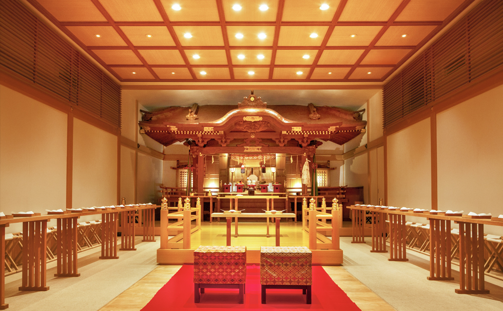 都会の中にありながら緑の多いロケーションの庭やテラスもあることが特徴で多くの方を魅了しております。大会場から小会場まで雰囲気様々な会場、チャペルや神殿での撮影が可能です。
