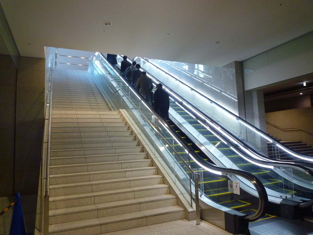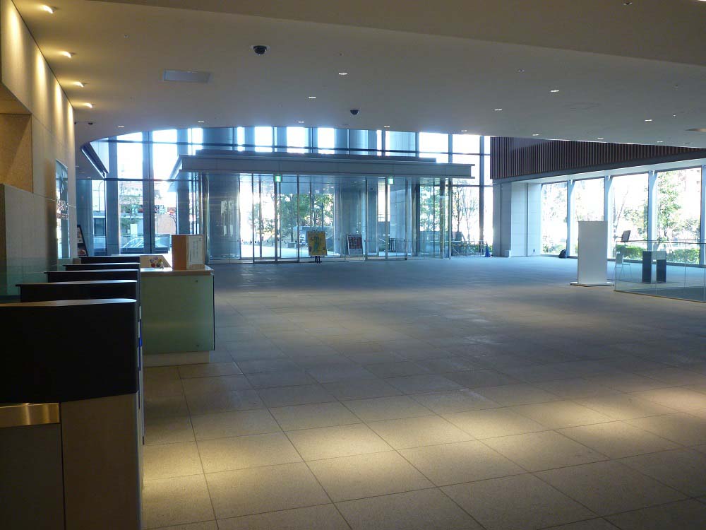エントランス内には十分なスペースと、横幅のある階段や地下へ繋がるエスカレーターがあり、他ではあまり見られない造りになっております。