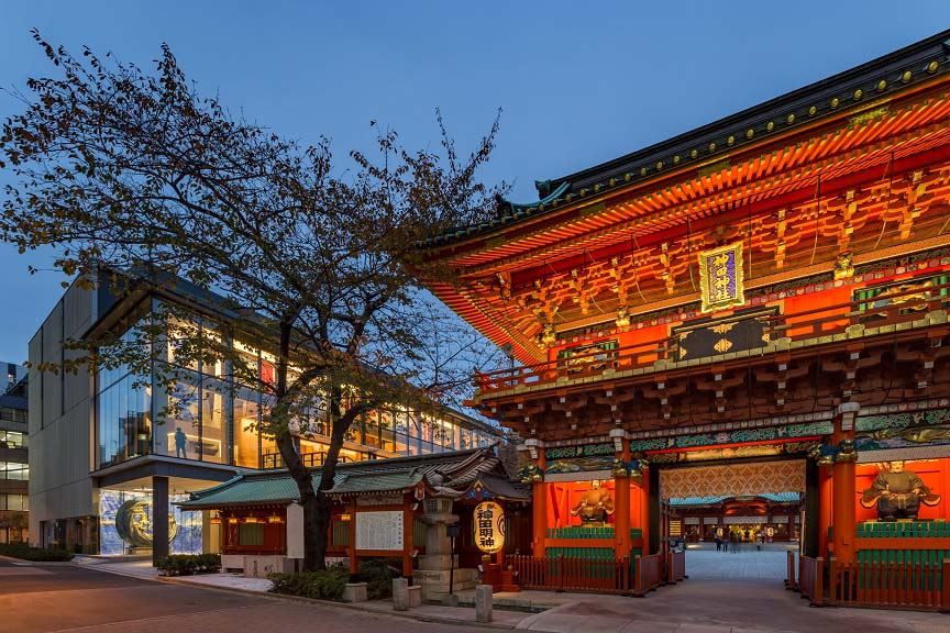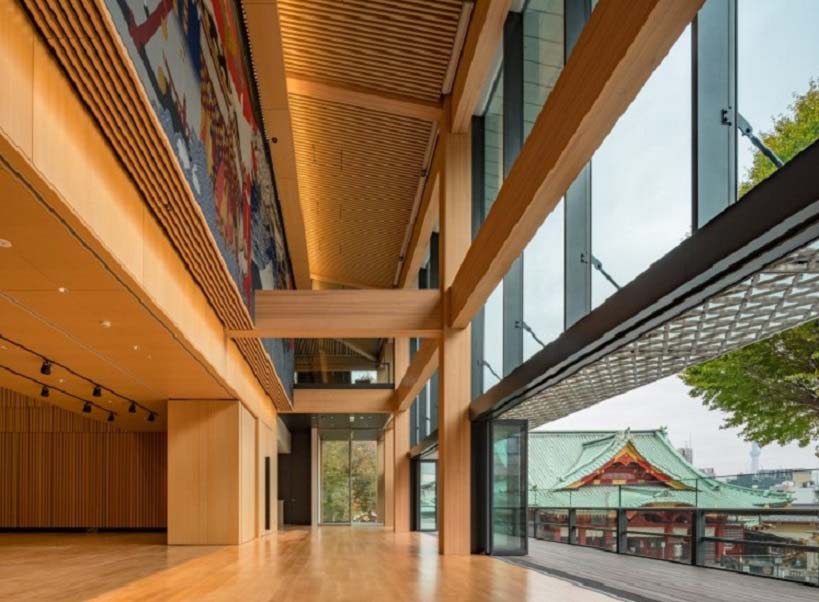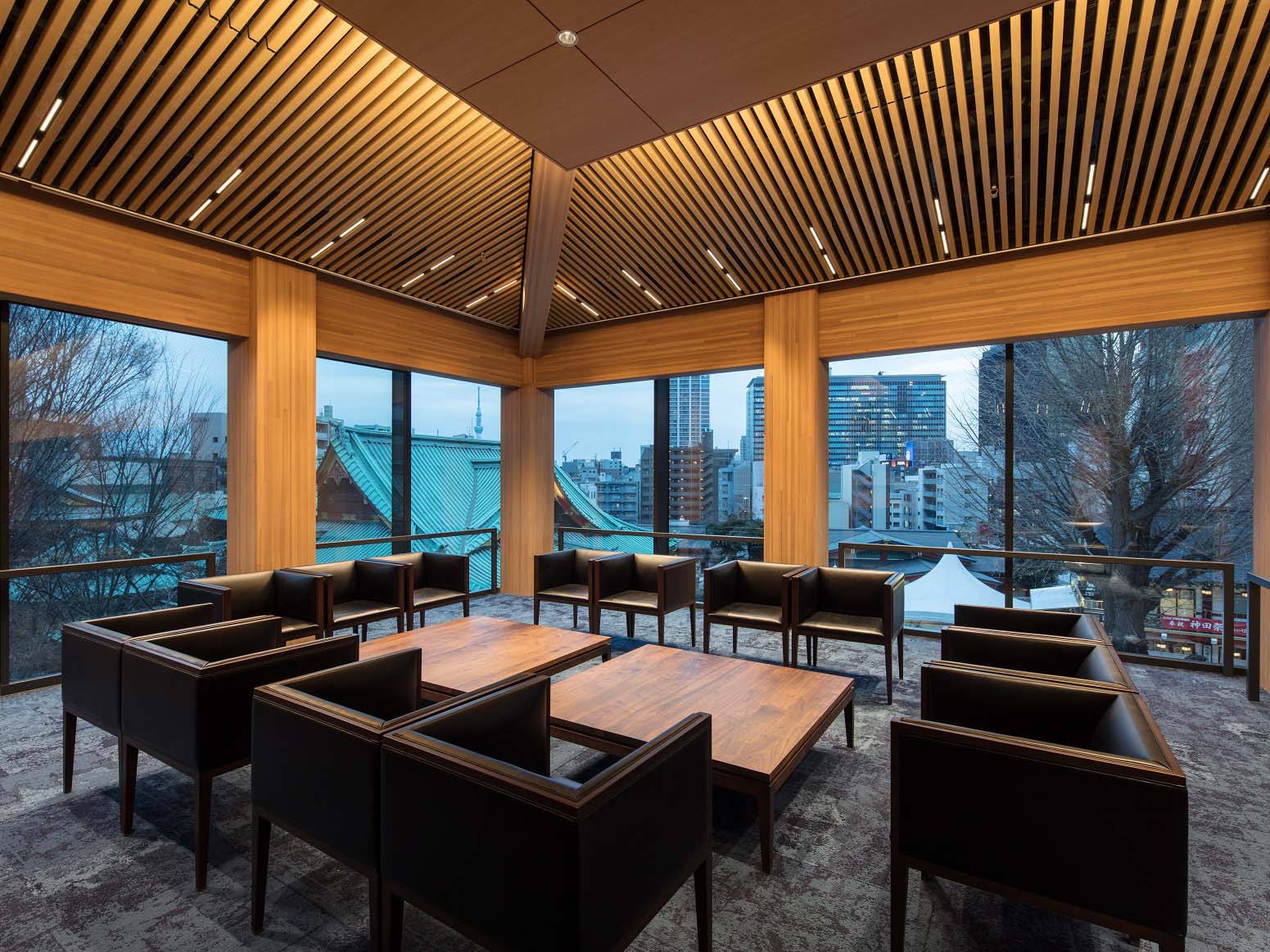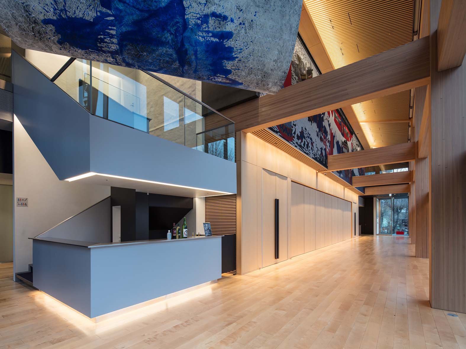 神田明神の境内にあるというロケーションに加え、ホール内部は和をイメージした特徴的なデザインです。
