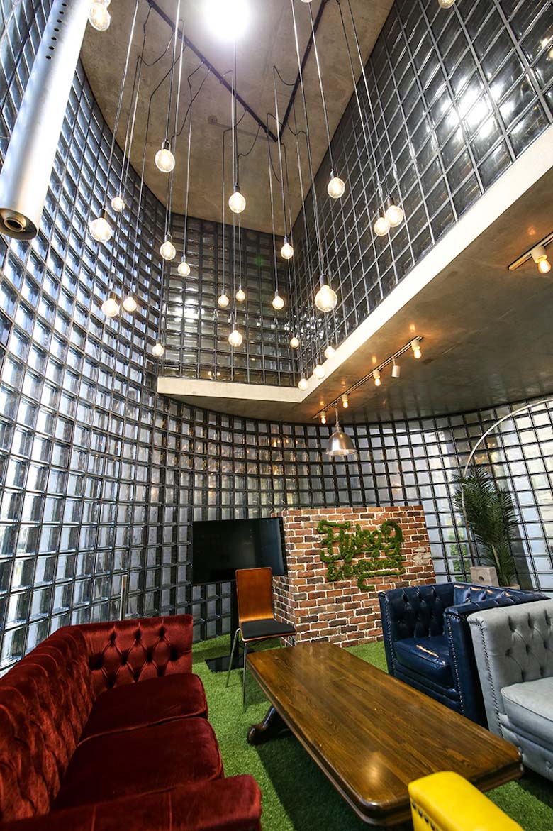中に入るとモダンなデザインの打放コンクリートの壁になっており