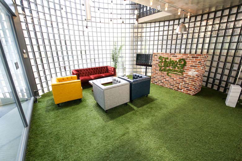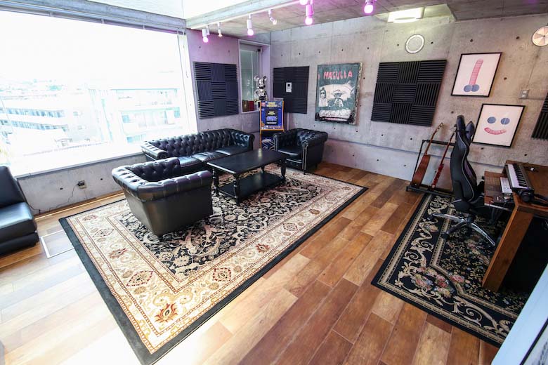 階段を上がると、海外(アメリカ)をモチーフに創られた日当たりがとても良いオフィスとスタジオと屋上がございます。屋上は、周りに高いビルが無く、新宿ビル郡が一望でき撮影に映える景色となっております。都内からのアクセスが便利です。