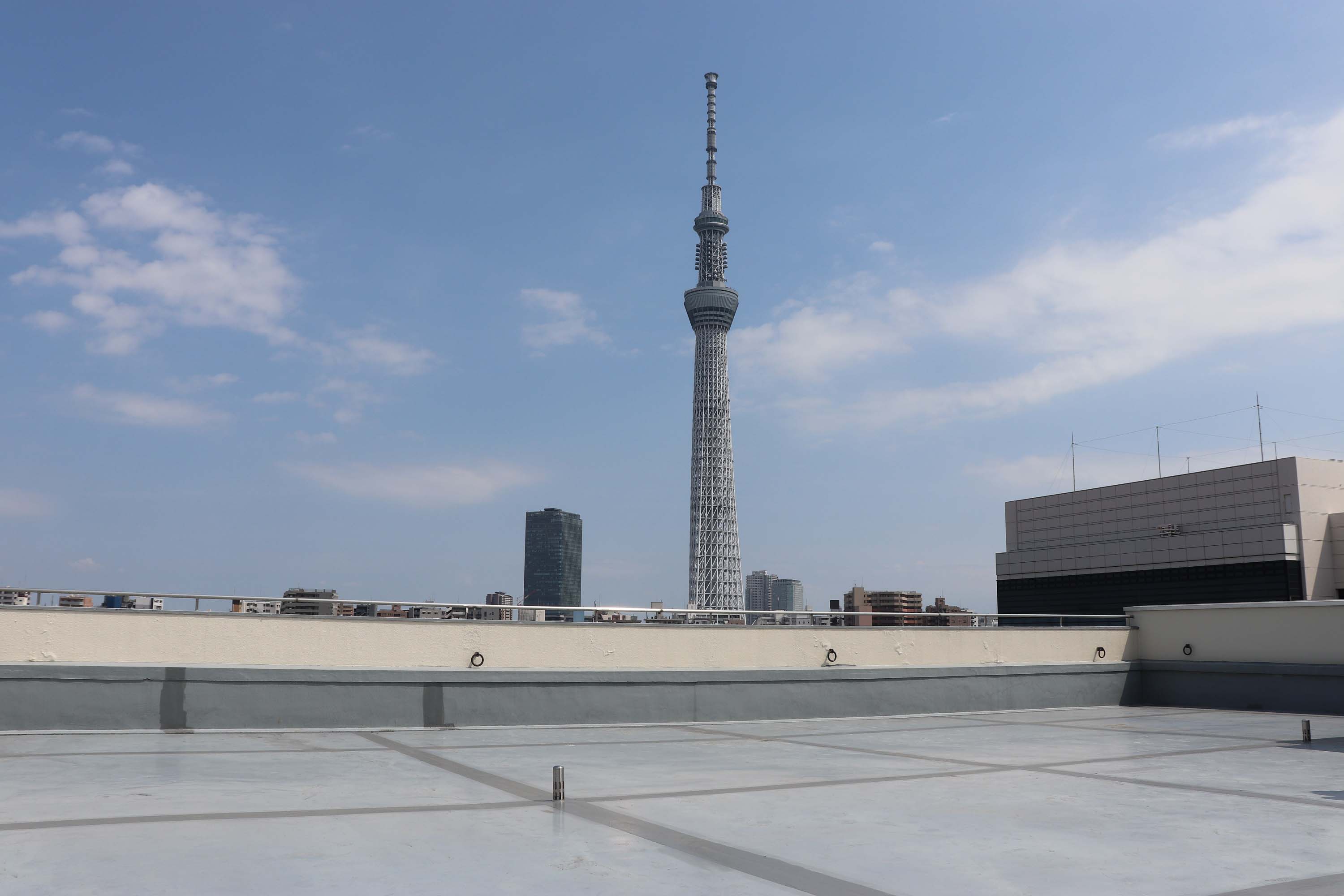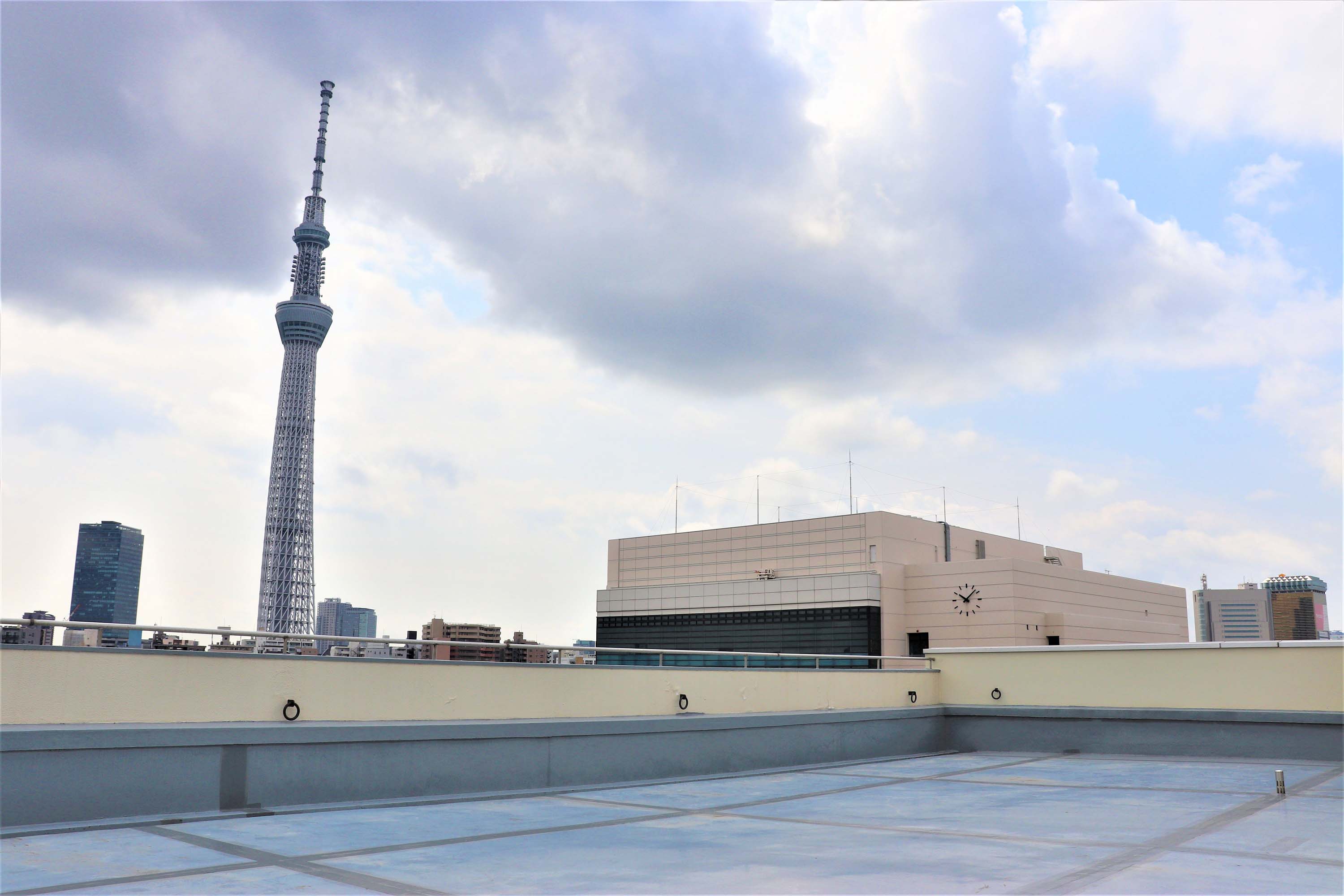 東京スカイツリーを一望できるオフィスビルの屋上を撮影でご利用いただけます。