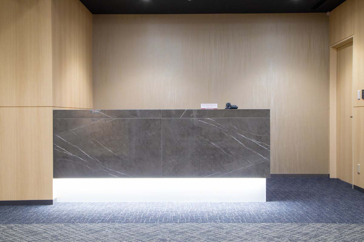 受付カウンター:大理石調の受付カウンターは、ホテルのフロントや大手企業の受付を連想させます。