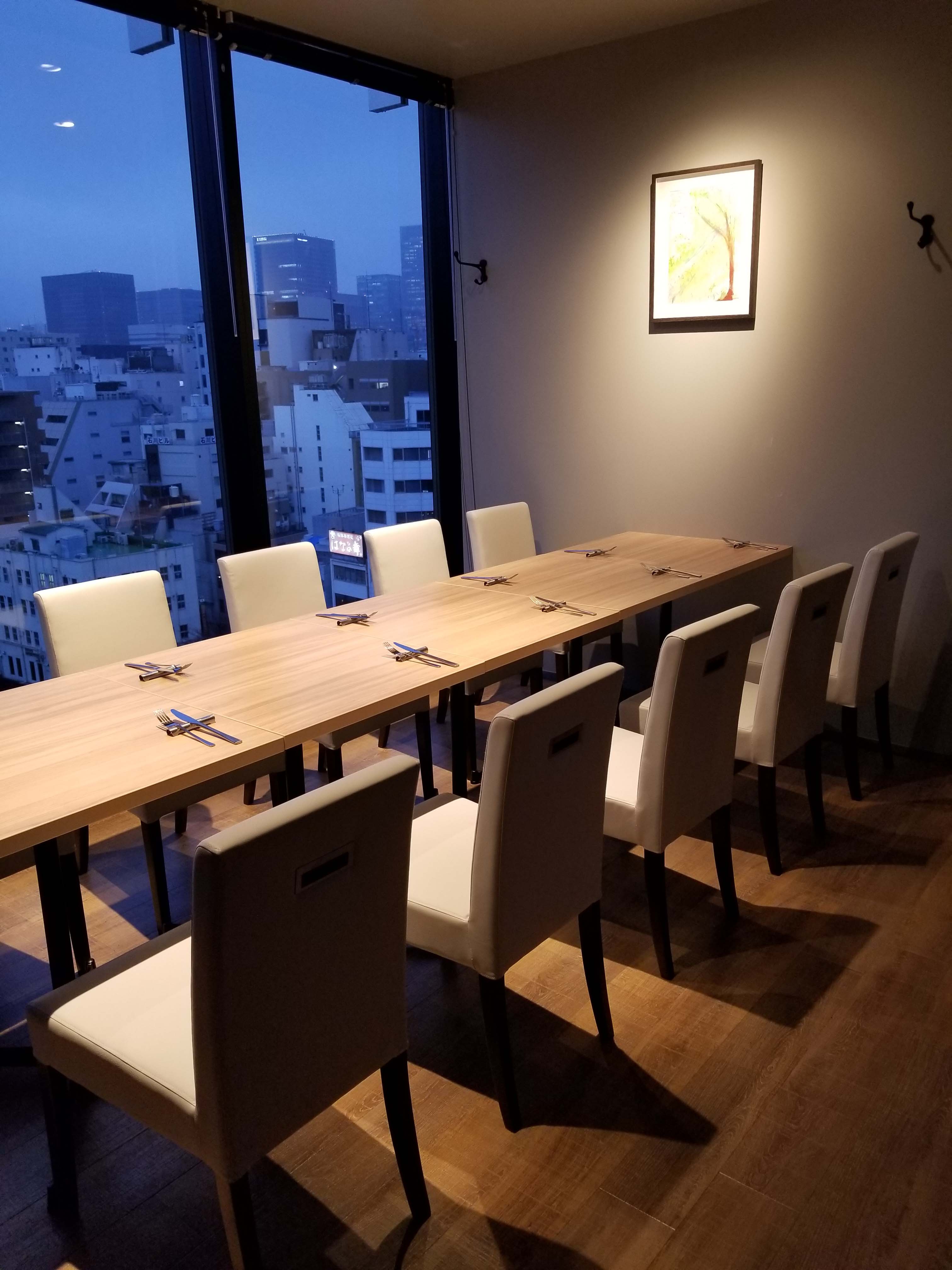 地上9階ガラス張りの席、個室から街が見渡せる眺めの良いロケーション。