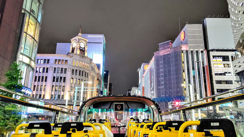 高さ3.8m・幅2.5m・長さ12m・2階部分座席は46席