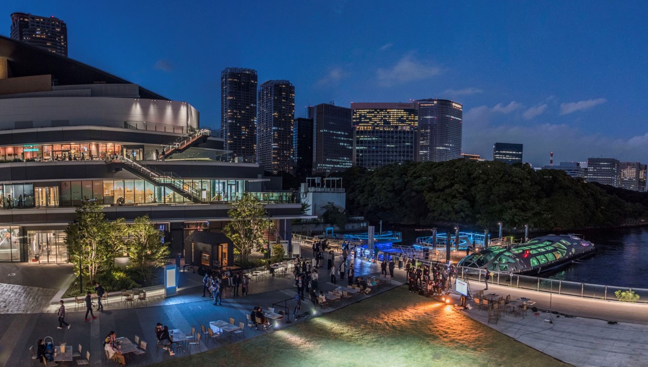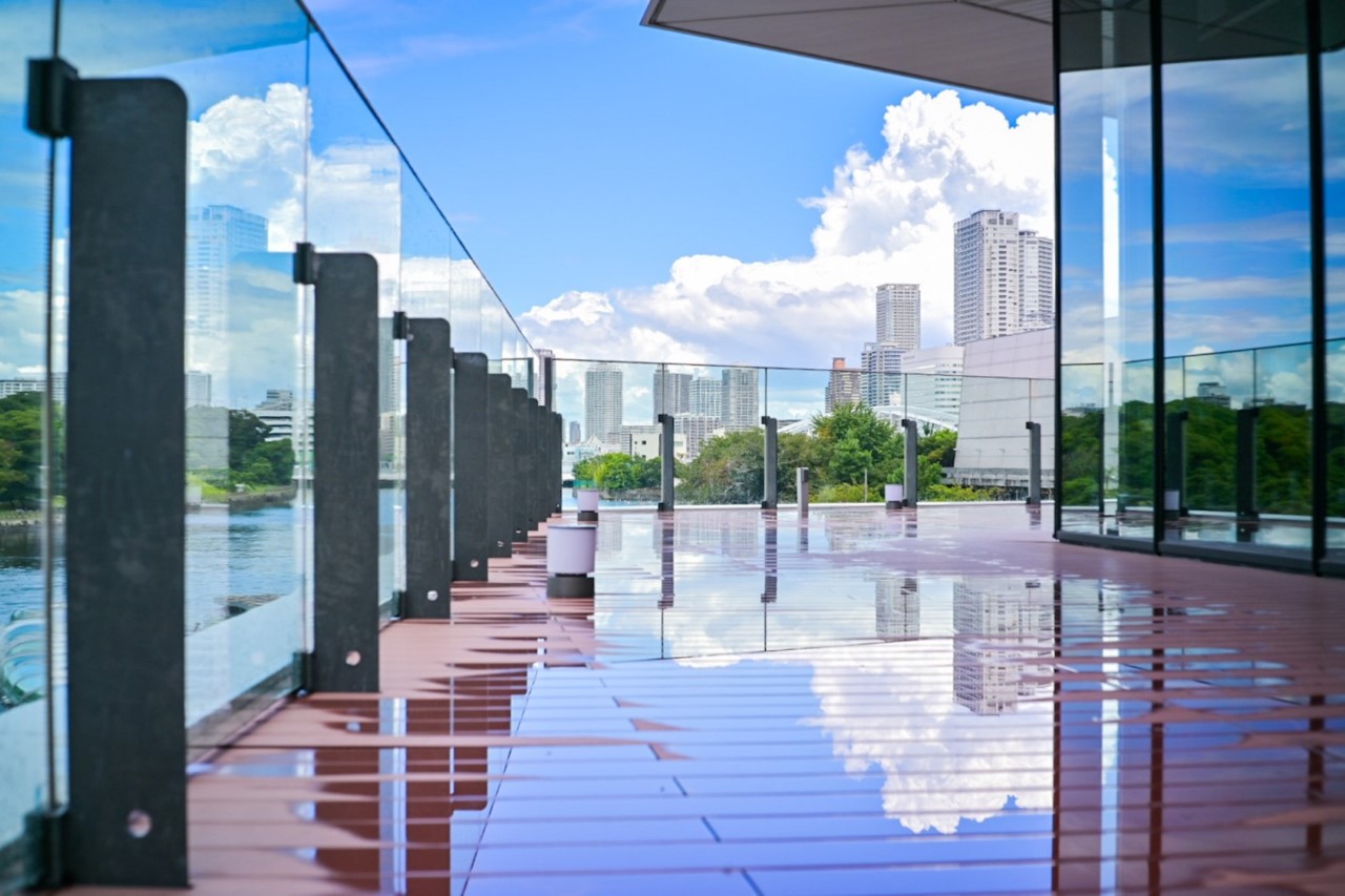 浜離宮恩賜庭園を臨む水辺に面した芝生の広場(プラザ)やテラスでは、TVCM、WEB動画はもとより映画や、テレビドラマ、雑誌やカタログなど様々な用途の撮影が可能で2020年の開業以来、非常に多くの撮影実績があります。