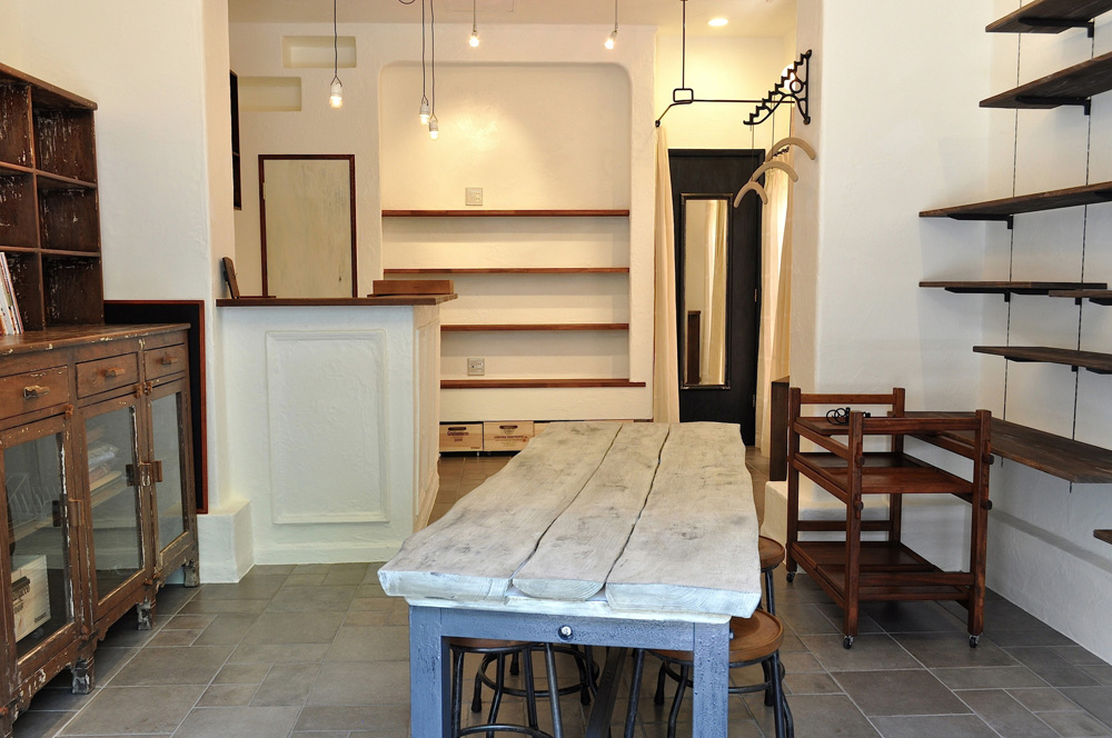 ピクチャーレール・ワイヤー、ハンガー・ハンガーポール、壁付けハンガーラック、インドのアンティーク棚(置き家具)、可動棚、テーブル2台、ガーデンテーブル・チェア脚、トルソー、ホワイトボード等ギャラリー・ブティック・教室等に利用できる備品多数。