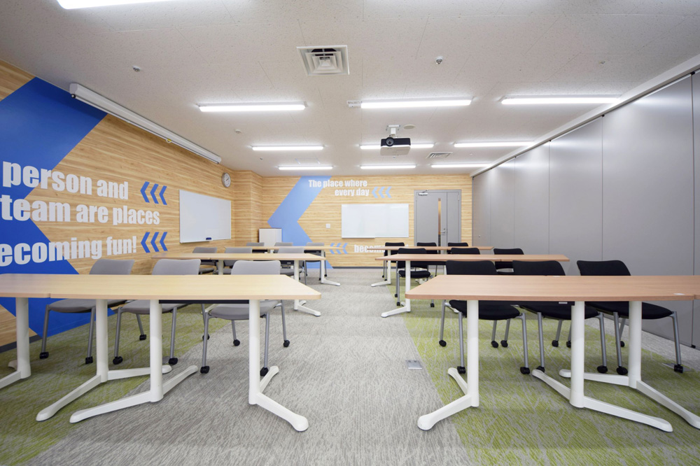 潤沢な移動式ホワイトボードや大型プロジェクターで会議やワークショップもスムーズに。