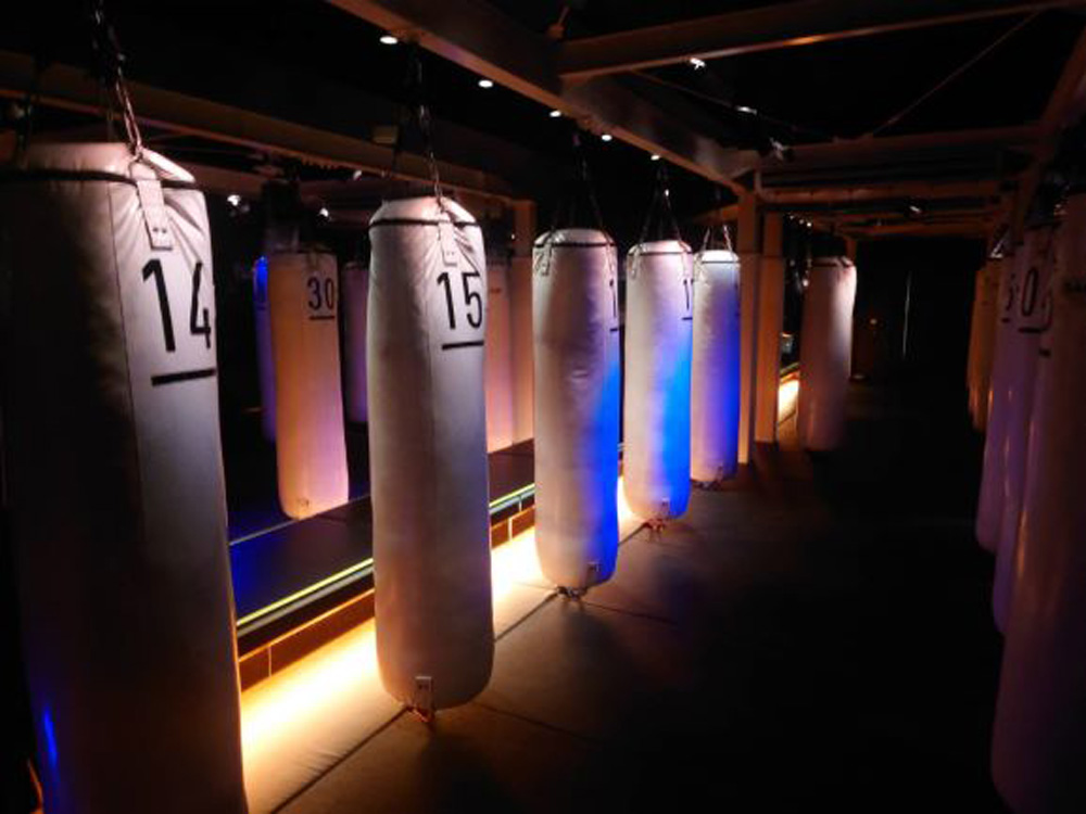 比較的夜中は撮影の時間を取ることができ、防音完備のため大きな音が出せます。テープライトやブラックライトも完備しておりクラブの様な空間の中でサンドバック打ちができます。
