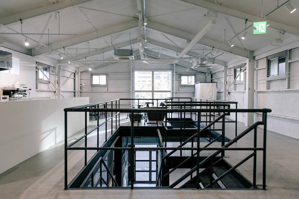 約163㎡・天井高約4mの広さを持つ、インダストリアルな空間。