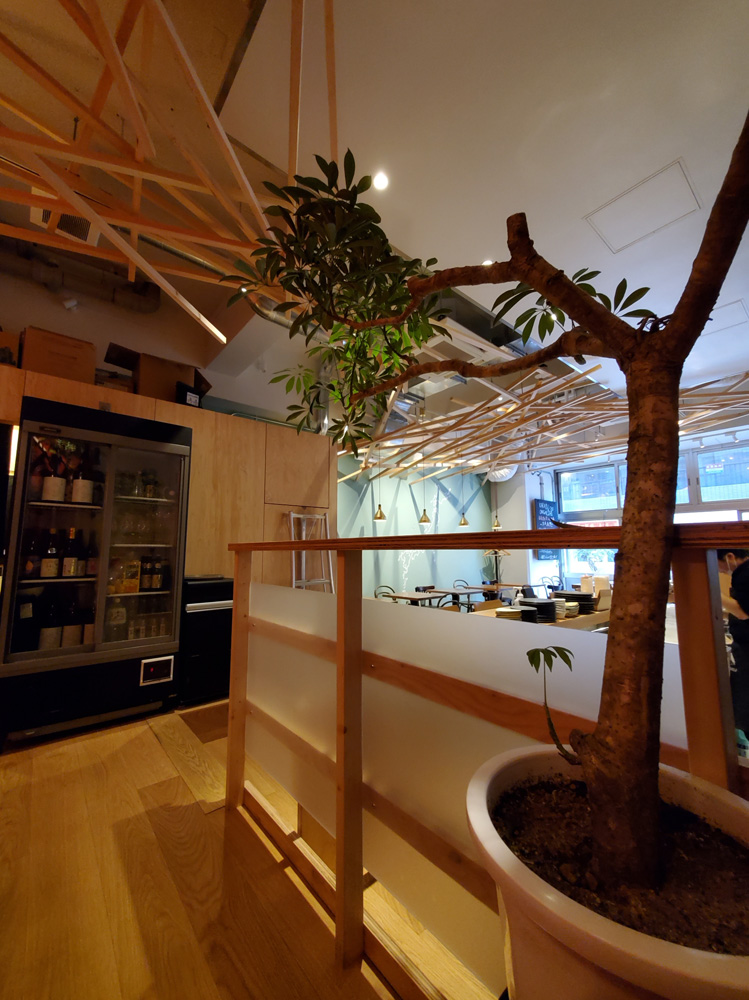 「鳥の巣」をイメージした独特な天井装飾など全体的にモダンアーバンな雰囲気のダイニングです。
