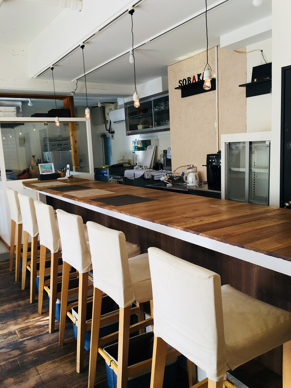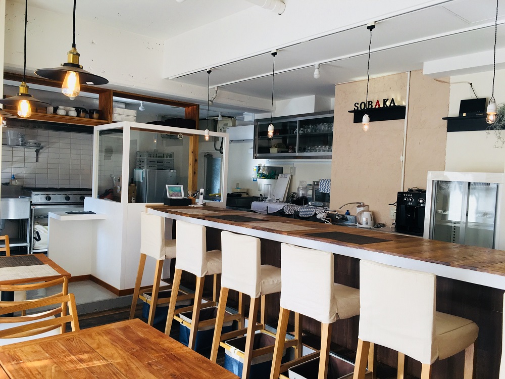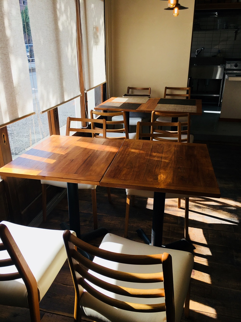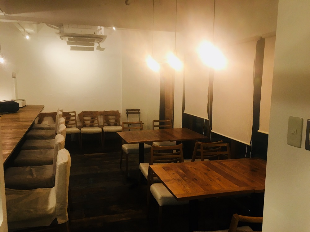 約14坪で、元イタリアンの居抜なので、カフェのような内装です。カウンターは5席.テーブル席は4×3の12席です。