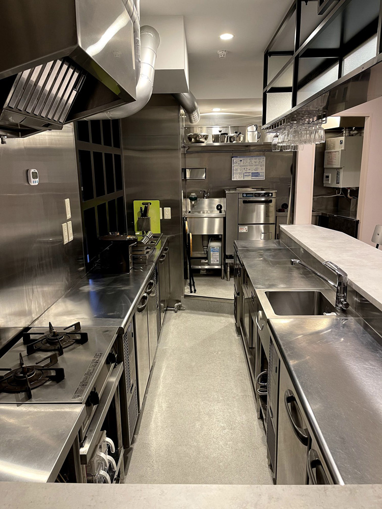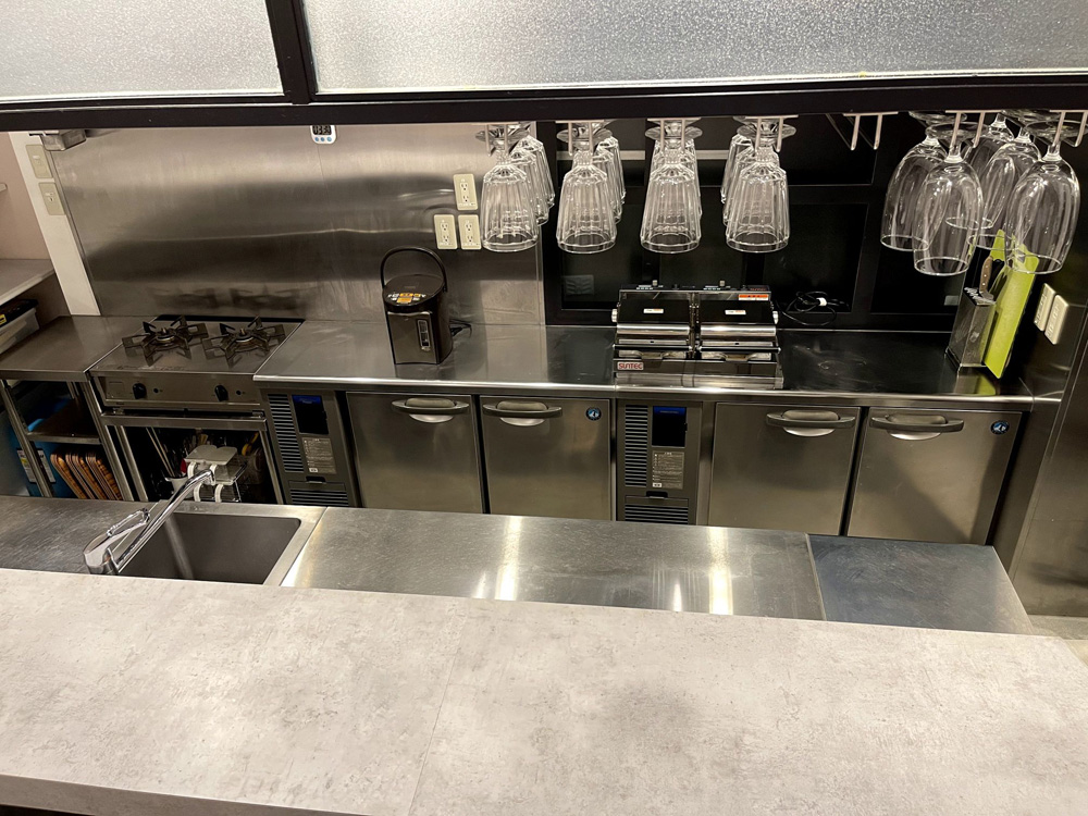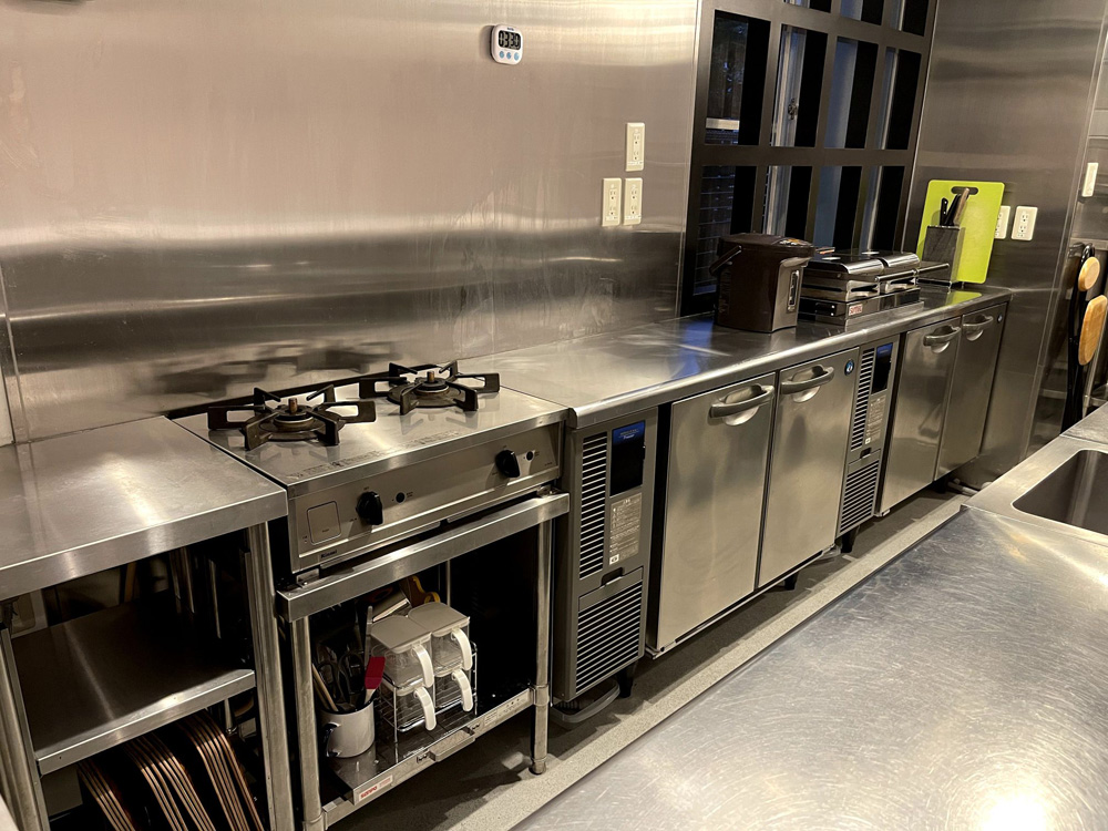 元カフェを使用したレンタルキッチンですのでプロ仕様の厨房機器と全てのカトラリーを用いた調理シーンを撮影頂けます。