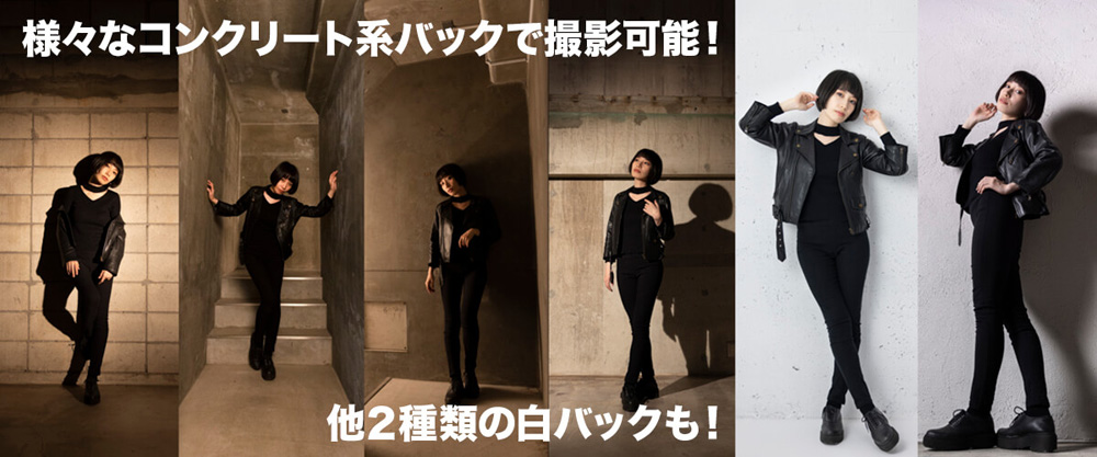 コンクリート壁を使用した撮影も可能