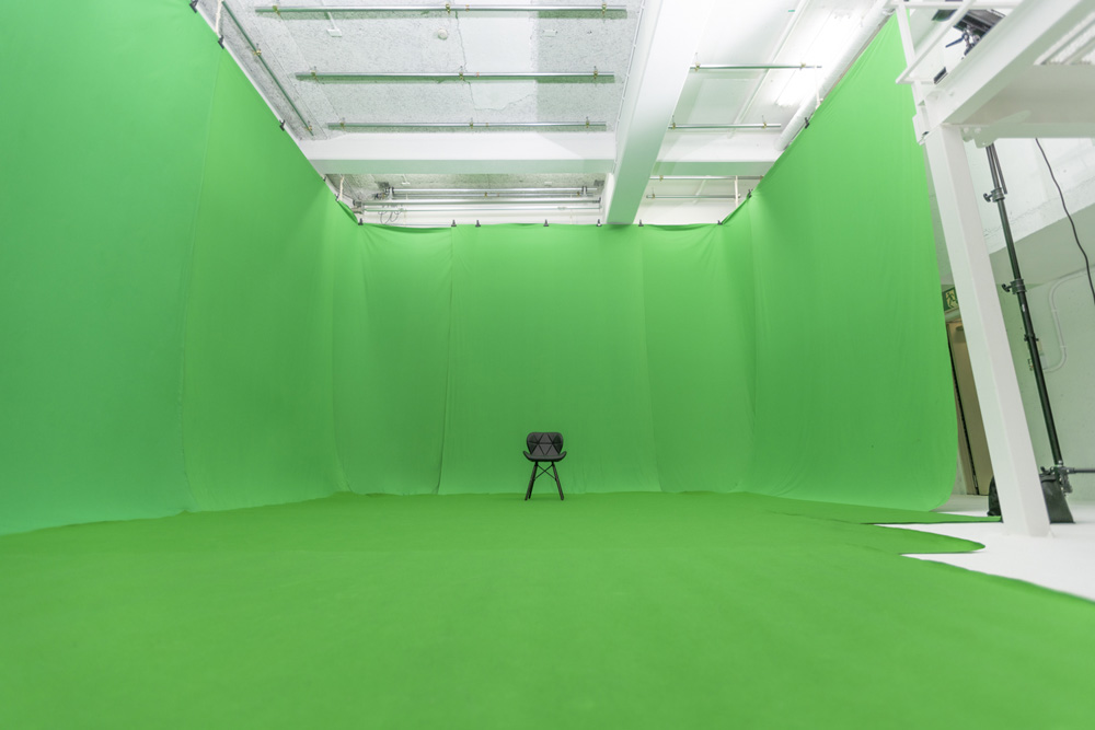 横幅6m×高さ4m×奥行7mの大型グリーンバックでクロマキー撮影可能(3種類のパックあり)
