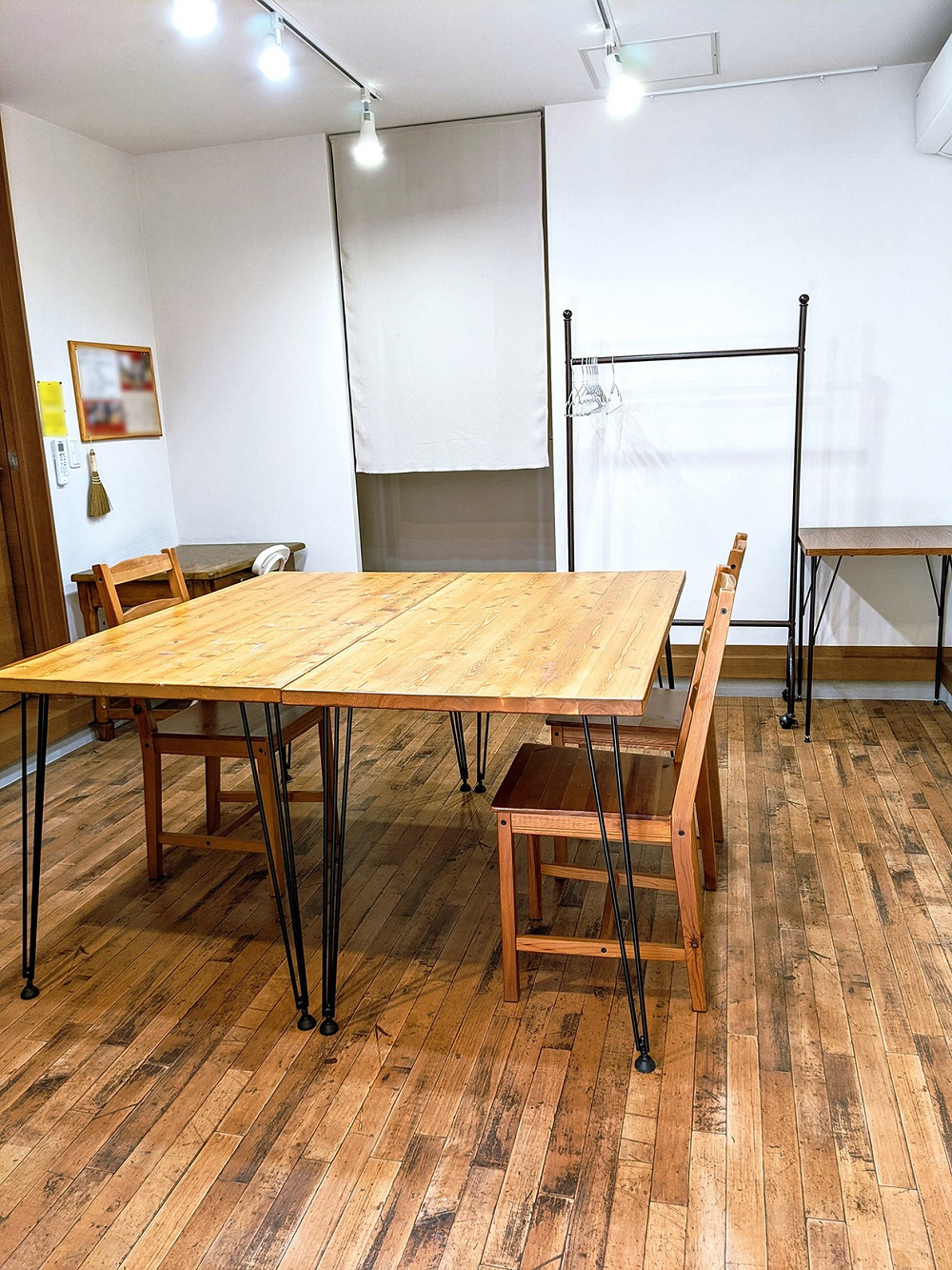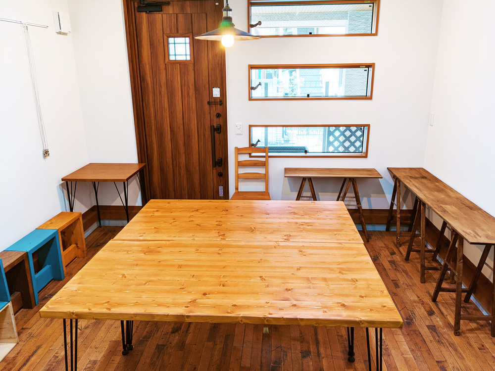 1軒屋の1階部分をレンタルスペースで貸し出しています。展示会、物販、ワークショップ、研修、教室、パーソナルトレーニング、リモートワーク、オフ会などいろんな使われ方をしています。気軽に心地良いスペースとして地域の方はもとより遠方からもご利用いただいております。エントランスには小さいながらもバラをはじめとした植栽で春〜秋は特に綺麗です。