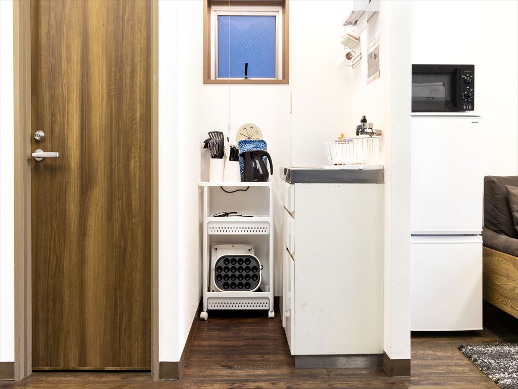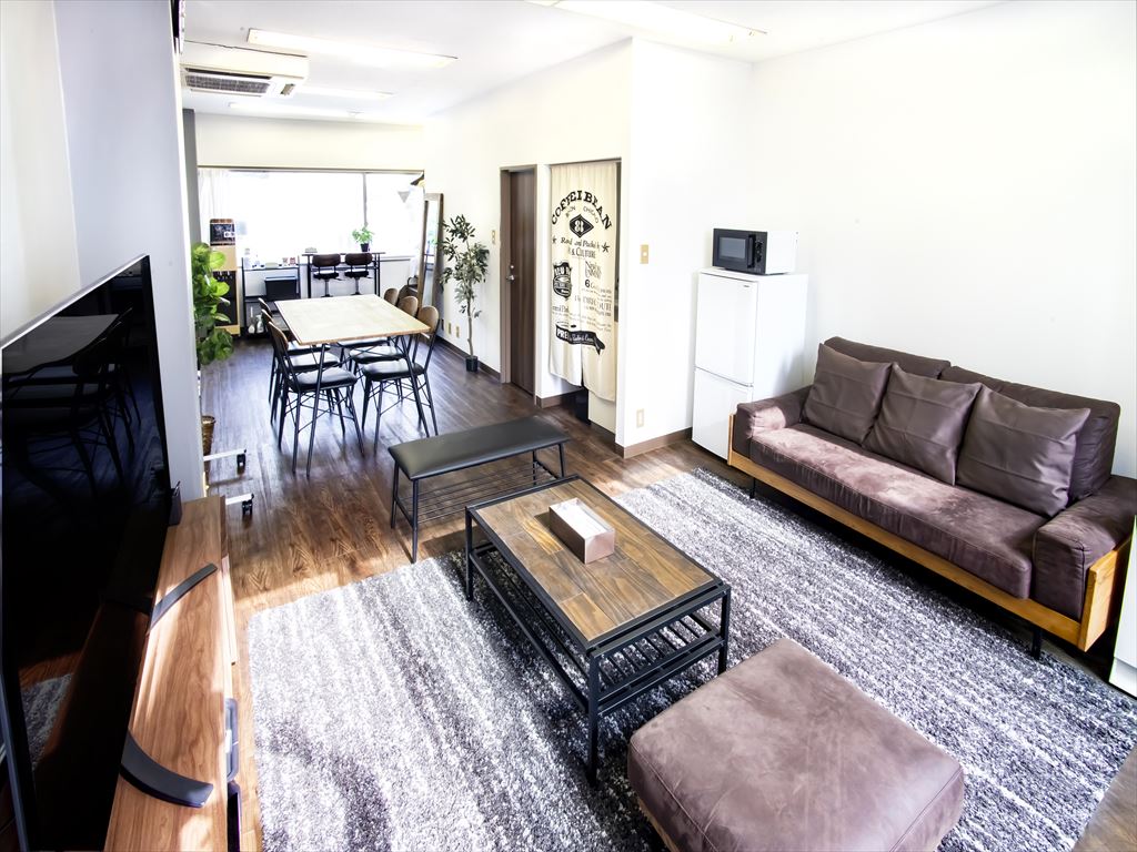 ・大型テレビ配置でソファ、椅子、ミニキッチン有で動画、スチール撮影等に多目的に活用可能です。