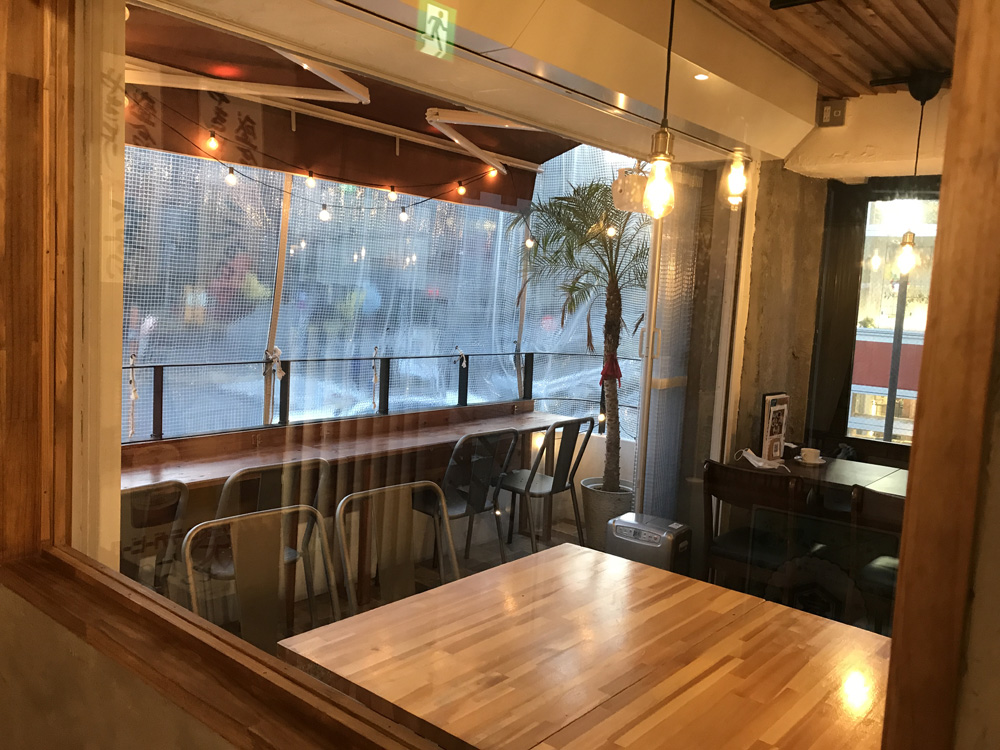 店内の大きな窓から喫茶側を見たところ(ビニールカーテンを閉めた場合)
