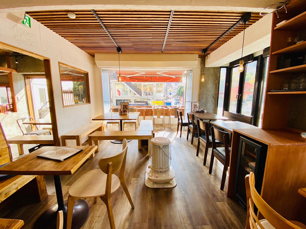 店内は木の温かみがあり、テラス席が開放的な喫茶スペースと、懐かしい雰囲気の酒場スペース、珈琲スタンド(6月より焙煎スペースが出来ます)の3要素で成り立っています。