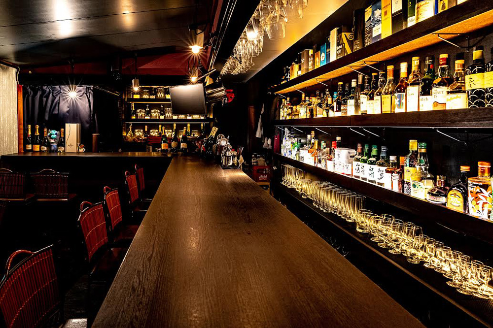 華やかなバーカウンターと、和の落ち着いた内装がございます。