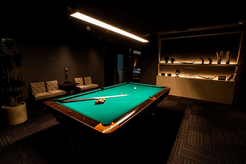 ビル2F~6Fまでビリヤード、ダーツ、卓球、シミュレーションゴルフ、カラオケが楽しめる複合アミューズメント施設。1フロアごとの貸切が可能。デートやレジャーシーンに最適な空間です。
