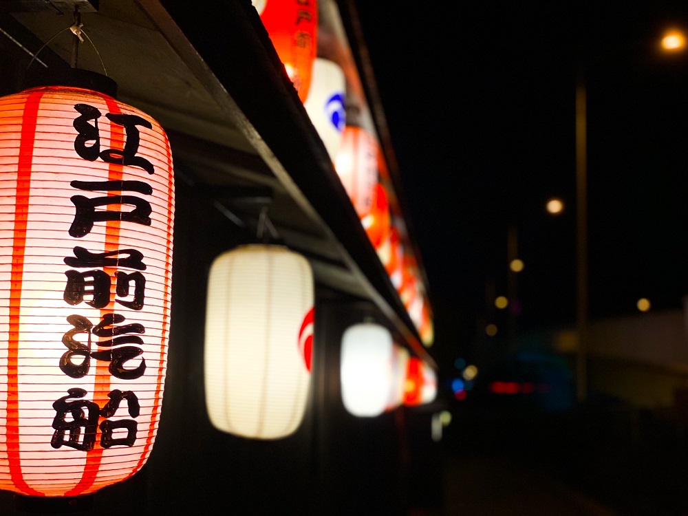 桟橋までの通路には多くの提灯が飾られ、雰囲気があります。